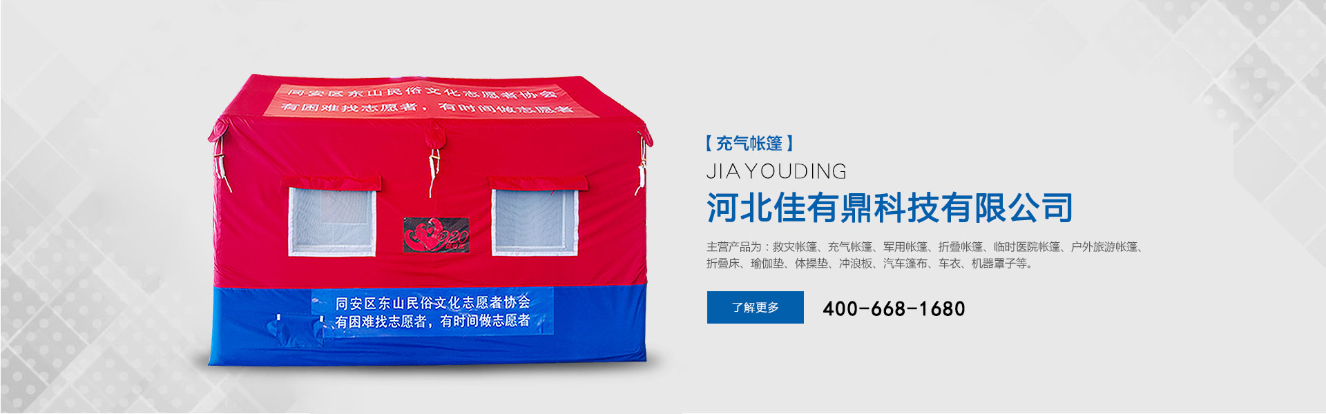 河北佳有鼎科技有限公司多年來專注于應(yīng)急救災(zāi)防護(hù)和戶外用品的研發(fā),是一家集研發(fā)、設(shè)計(jì)、生產(chǎn)、銷售、服務(wù)于一體的綜合型公司。位于大廣高速和邢衡高速的連接地段,工廠占地面積約2萬(wàn)平方米,3分鐘可達(dá)高速其便捷的交通優(yōu)勢(shì)可以快速服務(wù)于北京天津河北省會(huì)山東省會(huì)等。